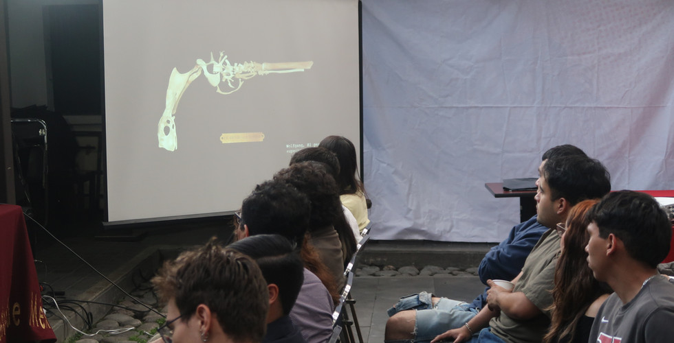 Reyes dijo que para 1938, Matta ya fue incluido en la exposición internacional de surrealismo. En su intervención mostró parte del trabajo del artista, quien en su obra crea su espacio cósmico en donde se pueden observar humanoides en cartas de tarot, como parte de la exploración de los surrealistas.